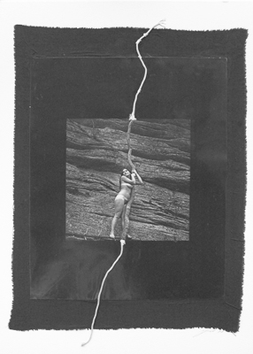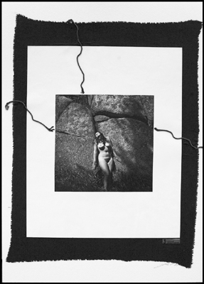 Zawsze odczuwałem konieczność uzupełnienia płaskiej papierowej fotografii jakimiś elementami przestrzennymi. Pozostało to mi do dzisiaj i dlatego stalowe pejzaże podałem ostatnio na wygiętych blachach. W tej serii aktów było dla mnie oczywiste zastosowanie czarnego płótna jako tła nawiązującego do czerni hałd a naklejony biała lina miała symbolizować i wzmacniać wrażenie przecięcia układu rytmów geologicznych warstw.