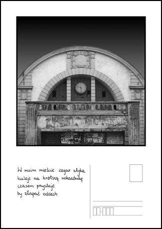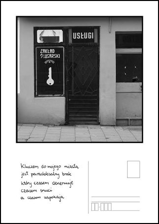Odręczne podpisy Krzysztofa Szlapy rzeczywiście z pogranicza poezji nie tyle ukierunkowują, co zmuszają do własnej bardzo osobistej interpretacji oglądanych widoków. W tym tkwi siła przekazu, jaki nam zaprezentował tak obrazem jak i słowem. Centrum naszego miasta przewrotnie do pokazanej rzeczywistości jest coraz droższe tak w czynszach jak i w opłatach za parkowanie. Czyli pocztówka o przecenionym mieście nas prowokuje do zajęcia stanowiska i wyartykułowania własnego zdania. Za albo przeciw. Nie możemy zostać obojętni. Tego wymagamy od dobrze przemyślanej fotografii.