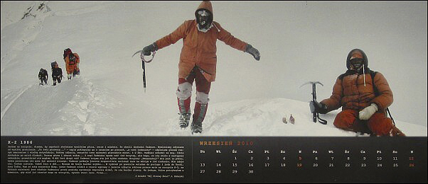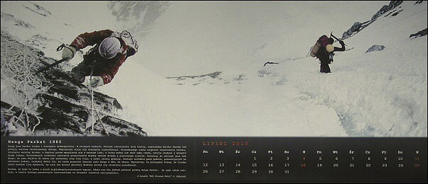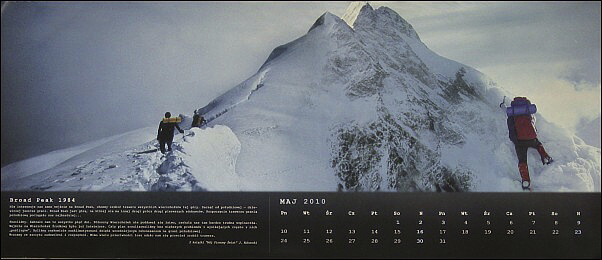 2010 Kalendarze – Kalendarze! Wojtek Kukuczka „W 20 ROCZNICĘ ŚMIERCI JERZEGO KUKUCZKI” to kalendarz, który Wojtek wraz z Rodziną i Przyjaciółmi wydał upamiętniając swojego Ojca. Ten piękny gest pamięci uzmysławia nam jak wielką i znaczącą dla nas wszystkich Polaków i Himalaistów Świata był Jerzy Kukuczka nasz taternik, alpinista i himalaista. ![]()