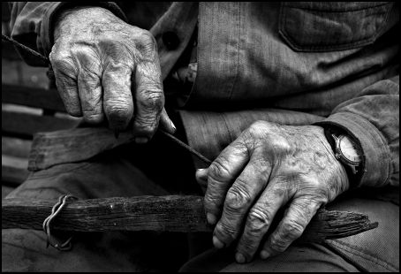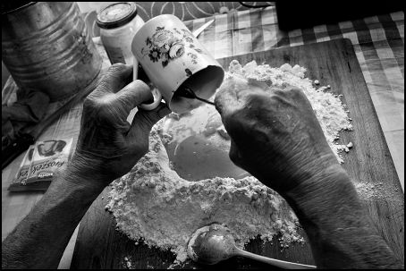 Banalność wykonywanych czynności zderzona z widokiem spracowanych rąk Taty to to, co nam odbiorcom tych zdjęć uzmysławia istotę tych klimatów. Jak wiele można opowiedzieć o człowieku i jego ciężkim życiu stosując tak proste, ale doskonałe technicznie ujęcia.