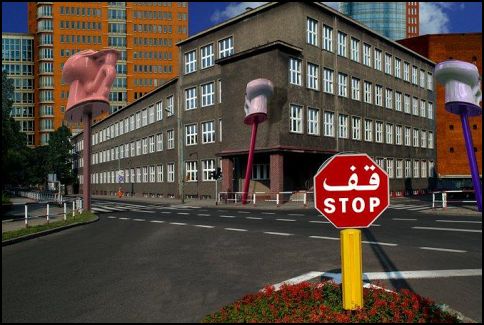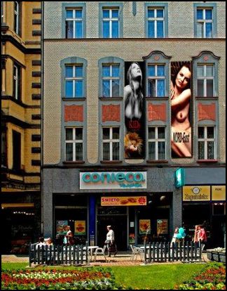 Klimat poszczególnych ulic jest tworzony umiejętnie dobranymi chmurami o właściwym nasyceniu tak zmienionego koloru jak i natężenia. Piotr nie byłby sobą gdyby w te ulice nie wmontował swoich kobiecych aktów. Przecież potrafi doskonale i dosadnie (w formie) je robić. Odsyłam do komentarza „Faktura aktu” Piotr Oleś. Tutaj nasuwa mi się kolejne skojarzenie do podobnej cechy Krzysztofa Niesporka, który też potrafi bardzo delikatnie wstawić akt do przemysłowego wnętrza. „Akty z Nikisza” Krzysztof Niesporek. Aby jednak to robić dobrze to trzeba to robić jako klasykę i to dobrą klasykę, bo nie wystarcza zwykłe wstawienie gołej panienki byle gdzie!