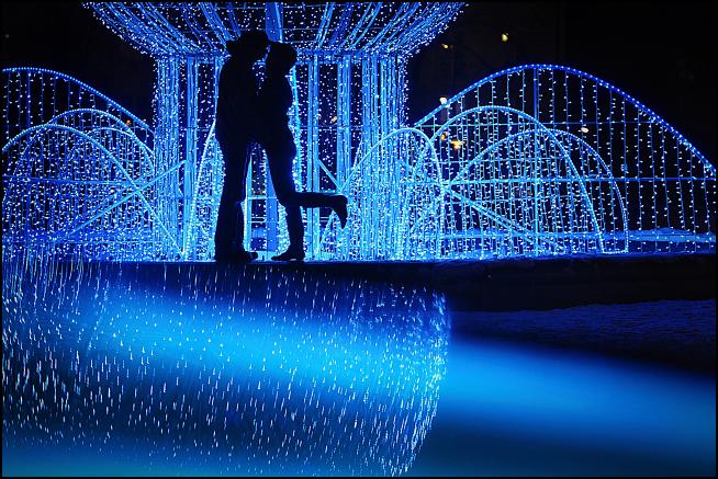 Para młodych ludzi w czułym uścisku na tle iluminacji całkowicie współczesnej. Ten świetlny fajerwerk i ci młodzi stanowią metaforę naszych czasów. Właśnie takie sytuacje są miejscami, w których Radosław Kazmierczak potrafi nas zaskoczyć czymś nietuzinkowym.