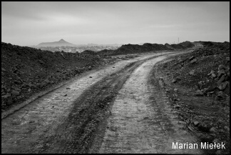 Jednak czarnych mulistych hałd jest chyba więcej i one też się pojawiły w tej prezentacji. Jednak ich charakter jest już inny. Nie są bajkowe są bardziej dramatyczne i rozlewają się wokół górniczych zakładów. Obłe kształty zainteresowały Mariana i pokazał je jako rodzaj kontrapunktu do tych barwnych. Ale istota obu rodzajów hałd jest taka sama – groźna dla człowieka. Jest jednak urokliwa dla fotografa biegnącego po grzbiecie jednej z nich. Każdy z nas fotografujących śląski krajobraz musiał przejść wiele kilometrów tak po hałdach jak i obok nich. Wszystkich nas fascynowały i wciągały w swoje przestrzenie.