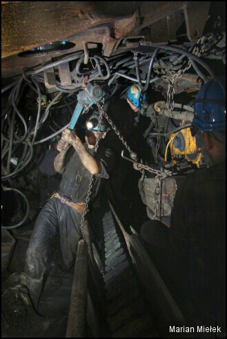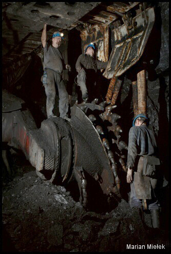 Zdjęcia przodka wydobywczego pokazują nam jak małe to są przestrzenie, jak wypełnione są ciężkimi maszynami – kombajnami – stalowymi transporterami i dużą ilością kabli energetycznych. Strop jest podpierany różnorodną obudową ! W tym wszystkim jest górnik – jednak nie jest to górnik zagubiony, lecz dobrze znający swój fach i swoją rolę przy wydobywaniu węgla. Jest dumny i patrzy spokojnie tak na wyrobisko jak i z tym wyrobiskiem doskonale daje sobie radę!