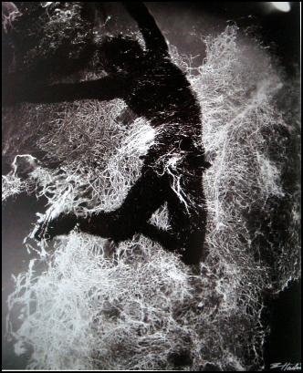 Techniki fotograficzne się nakładają tworząc ciekawe kolaże ( tak mi bliskie) a jednak całkiem inne. Jako fotograf związany z teatrem doskonale się wczuwał w dwoistość portretów aktorów. Widać to doskonale w łączonych – nakładanych – przenikających się twarzach. Zgodnie z tym, co ma do zaprezentowania właśnie aktor podczas konkretnego spektaklu. Wchodząc w abstrakcję nie unika też dosłowności przekazu – przykładem całkowicie banalne ustawienie .Kantora w jego sztuce z realnymi rekwizytami.