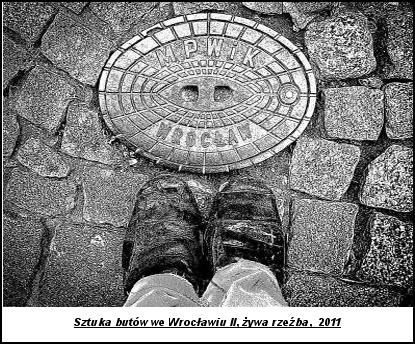 Andrzej Dudek-Dürer o fotografiach z „Wystawy „Meta Przemiana II, Andrzej Dudek-Dürer, Żywa Rzeźba”: od 1969 realizuję life performance Sztuka Butów – Sztuka Spodni – Sztuka Andrzeja Dudka-Dürera / żywa rzeźba / w Miejscach, w których się Pojawiam... Buty i spodnie są używane od 43 lat. Podawane są one regularnej naprawie oraz różnego rodzaju formom dokumentacji – fotografia, obiekty, video, grafika, rysunek... Wchodzą one w stały kontakt z odbiorcą / często nieświadomego udziału w relacji artystycznej (...) Sztuka jest dla mnie sposobem, możliwością, autorealizacji komunikacji i kooperacji... Moje Życie jest Sztuką (...)