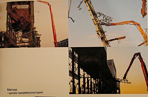 Marek Locher od kilku już lat fotograficznie dokumentował to znikanie naszego przemysłu . Był w miejscach i chwilach, gdy zostają wyburzane tak hale produkcyjne jak i kominy oraz wieże wyciągowe. Podziwiałem Jego refleks w chwytaniu momentu upadku tych konstrukcji się walących. Zawsze też zdobywa o nich informacje o tym, czym były, kiedy i przez kogo były wybudowane te odchodzące zabytki naszej techniki.