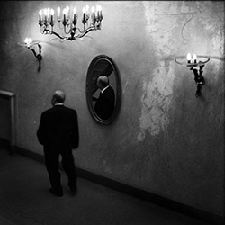 To bardzo dobre "motto", którego użył Krzysztof Lisiak do swojej pierwszej fotograficznej wystawy. W tych słowach zawiera się sens i istota jego fotografii. Tak On to czuje i tak ja to odbieram. Ale to otarcie o rzeczywistość jest głębsze i bardziej znaczące. Dla mnie widza tej wystawy to odkrycie "zadumy" ludzi sfotografowanych w kuluarach filharmonii czy sali wystawowej. I to jest to COŚ, co chce nam pokazać Krzysztof Lisiak. Nie jest to prosty fotograficzny zabieg skierowania obiektywu od sceny na widownię i stwierdzenia, że tam też się coś ciekawego dzieje.