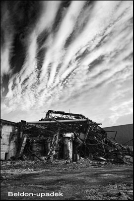 Marek Locher fotografuje odchodzenie naszego przemysłu ciężkiego. Jest w miejscach i chwilach, gdy zostają wyburzane tak hale produkcyjne jak i kominy oraz wieże wyciągowe. Ale nie Jego refleks w chwytaniu momentu upadku tych konstrukcji jest najważniejszy. Cenna jest jego pasja zdobywania wiedzy o tym, czym były, kiedy i przez kogo były wybudowane te wspaniałe budowle techniczne. Właśnie ta pasja poznania historii tych obiektów owocuje tym, że zdjęcia końca ich żywota są tak dobre i przejmujące swym tragizmem a jednocześnie pięknem. Nie jest to fotografia upadku i znikania tego, co było dla nas bardzo ważne i cenne.