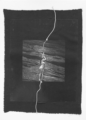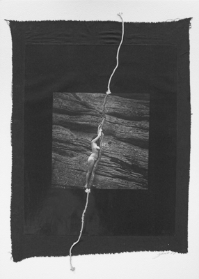 Zawsze odczuwałem konieczność uzupełnienia płaskiej papierowej fotografii jakimiś elementami przestrzennymi. Pozostało to mi do dzisiaj i dlatego stalowe pejzaże podałem ostatnio na wygiętych blachach. W tej serii aktów było dla mnie oczywiste zastosowanie czarnego płótna jako tła nawiązującego do czerni hałd a naklejony biała lina miała symbolizować i wzmacniać wrażenie przecięcia układu rytmów geologicznych warstw.