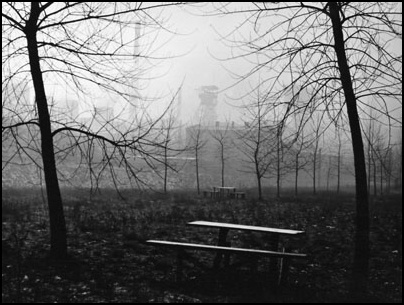 Romantyczne spojrzenie na rzeczywistość pozwoliły mu dojrzeć zwykłą ławeczkę wśród rachitycznych drzew wokół kopalnianej zabudowy. Rozbudowywujący się przemysł pochłaniał śląską tradycyjną zabudowę familoków.