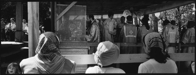 Zastosowany panoramiczny kadr pokazuje tylko to, co powinno być pokazane. Pątników ich skupienie, zadumę i odpoczynek. Wszystko to, co tworzy religijny klimat tego ważnego dla wyznawców Prawosławia miejsca.