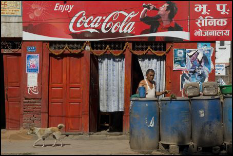 Coca Cola stała się symbolem kultury zachodu, kapitalizmu, wolnego rynku, demokracji i dobrobytu. Ludzie żyjący w Nepalu nie osiągnęli jeszcze zachodniego etapu rozwoju cywilizacyjnego. Gospodarka Kraju jest skromna, ustrój demokratyczny zagrożony, ludzie często żyją na ulicy. Najważniejszym celem staje się zaspokojenie podstawowych potrzeb. Bez wątpienia imponuje im zachodni styl życia, w którym ich zdaniem nie ma biedy, niesprawiedliwości, ograniczeń swobód. Symbolem tamtej rzeczywistości, flagą kultury zachodu staje się logo Coca Coli. Ludzie chętnie eksponują je na swoich domach, zakładach pracy, miejscach użyteczności publicznej. Idealizują świat zachodni, rozumieją go tak jak został im przedstawiony w filmach i kolorowych gazetach. Manifestują aprobatę dla wartości, których nigdy nie doświadczyli.