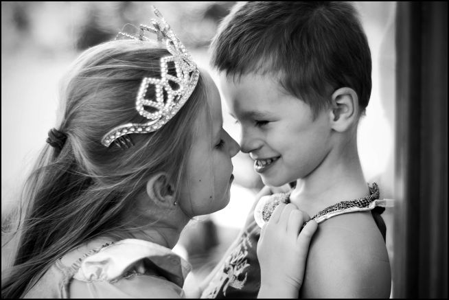 Miłość rodzi się wcześnie. To bardzo sympatyczne zdjęcie młodziutkiej zapatrzonej w siebie parki. Przecież tak często bywa. Wszyscy pamiętamy nasze szkolne miłości. Niektóre ulotne a niektóre trwające przez całe nasze życie.