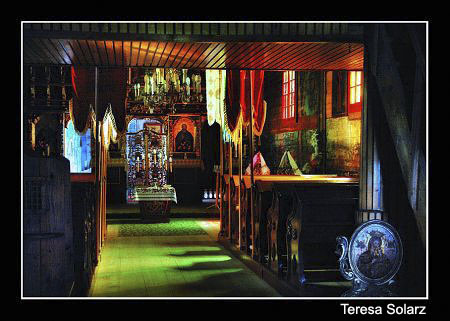 Tak też jest z zdjęciami z pleneru Stowarzyszenia w Tymbarku. Są one bardzo barwne właśnie przypominają okres malarskiego Hiperrealizmu. Te widoki są piękniejsze niż rzeczywistość w naturze. Jednocześnie chyba właśnie ten kolor podkreśla fascynację tym miejscem. To usprawiedliwienie i jednocześnie zaleta tak potraktowania pejzażu. Rozmycie fragmentów kościelnych ikon oglądanych przez jakieś okienko zmusza nas do zadumy nad tajemnicą wiary. Całość wystawy oparta jest na zestawach nawzajem się uzupełniających i podkreślających spójność tematu podjętego przez autora. Naturalnie kilka zaprezentowanych prac nie ogarnia całej wystawy, jednak chyba mówi o jej specyfice. A cała opowieść o Szymbarku zaczyna się od realistycznego okienka, podkowy i starego roweru. Ten realizm wprowadza nas w świat, który odwiedzili miłośnicy fotografii z Sosnowca. marzec 2010 |