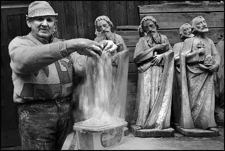 Aleksander Prugar zasygnalizował nam wizualnie czubek góry lodowej tego tematu. Jego dwa cykle fotograficzne „Święty Beton” i „Odcocrealniacze” pokazują nam ważne symbole wiary i ideologii.