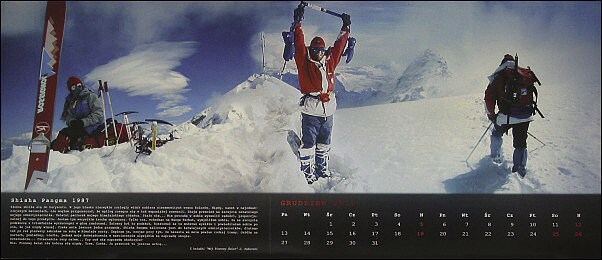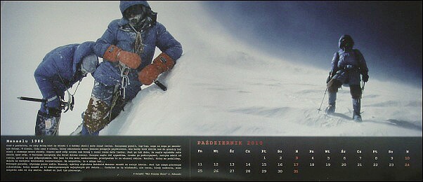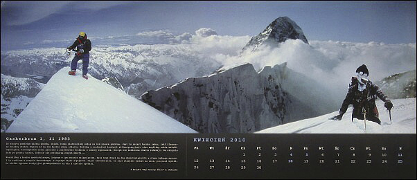 2010 Kalendarze – Kalendarze! Wojtek Kukuczka „W 20 ROCZNICĘ ŚMIERCI JERZEGO KUKUCZKI” to kalendarz, który Wojtek wraz z Rodziną i Przyjaciółmi wydał upamiętniając swojego Ojca. Ten piękny gest pamięci uzmysławia nam jak wielką i znaczącą dla nas wszystkich Polaków i Himalaistów Świata był Jerzy Kukuczka nasz taternik, alpinista i himalaista. ![]()