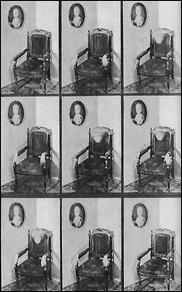 „Wspomnienie” to jego ważny i lubiany zestaw fotografii. (niestety dysponuję dość słabą kopią). Zacieranie się obrazu znajomej osoby we wspomnieniach nabiera cech pulsującego zmiennym rytmem procesu. Na kolejnych zdjęciach staroświeckiego fotela pojawiają się fragmenty postaci, która w nim siadła – twarz, ręce, mglisty zarys tułowia. Te zamazane obrazy nie pojawiają się w sposób ciągły, nadając wspomnianej osobie coraz większą konkretność. Po zdjęciu z fragmentem twarzy następuje zdj. pustego fotela, by ustąpić miejsce zdjęciu, na którym pojawiają się ręce, po czym znów wszystko znika. Niszczący wpływ czasu został tu oddany fotograficznymi środkami w sposób bardzo oryginalny. To celny opis Alfreda Ligockiego. Dla mnie ten zestaw też jest bardzo ważny, ale to pokażę ostatnim zdjęciem tego komentarza.