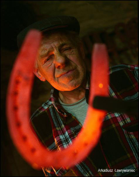 Pierwsze zdjęcie zostało nagrodzone – pytanie, dlaczego – dla mnie jest to oczywiste, bo to ujęcie w swoim skrucie mówi coś więcej o istocie samego kowalstwa, prezentując jednocześnie portret ostatniego śląskiego kowala. Rozgrzana do czerwoności podkowa podana w nadnaturalnej wielkości na pierwszym planie mówi nam jednoznacznie o tym, czym jest kowalstwo – ogień – metal – koń. Cały ten przekaz jest zwarty i jednoznaczny.