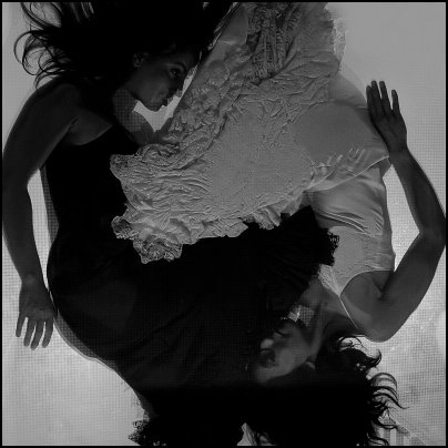 Kolaże modelek i ażurowych materiałów wspólnie się przenikających tworzą interesującą przestrzeń wizualną oddaną przez cz-b zdjęcia.