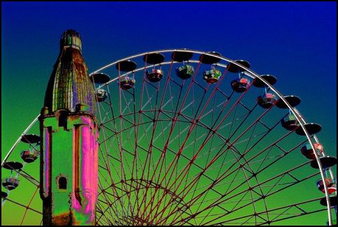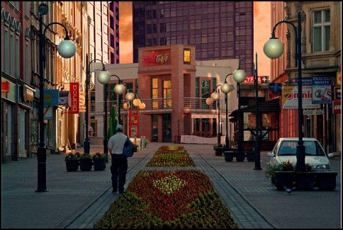 W fotogramach tego Albumu to zdecydowanie i ostrość zestawień widać dobitnie. A gdybyście państwo słyszeli jak Piotr potrafi bronić swojej wizji to byście sami zobaczyli i usłyszeli to wewnętrzne przekonanie do tego, co wykonał i co mówi. Często byliśmy i jesteśmy innego zdania, ale potrafimy się szanować i doceniać inność. To cecha rzadka, ale godna zauważenia. Współczesne środki techniczne mam na myśli Photoshopa dają nam bardzo przystępne możliwości tworzenia swoich wizji. Jednak zasady kompozycji i tonalności barwne pozostają bez zmian i sztuką jest ich tak zachowanie jak i umiejętne zestawienia. Na tle wielu dokonań takich czy innych wystaw to konsekwencja budowania autorskiego obrazu przyszłości Chorzowa jest mocna i znacząca. Kolorystyka murów kamienic jest podbita, ale przecież żyjemy w otoczeniu setek kolorowych reklam, które podbijają naszą wrażliwość na jaskrawy kolor.