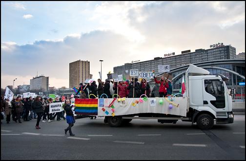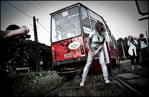 -- tramwaj i pani motorniczy przerzuca zwrotnicę w czasie Manify bo tylko wtedy męscy fotoreporterzy zauważają tą kobietę ciężko pracujacą.