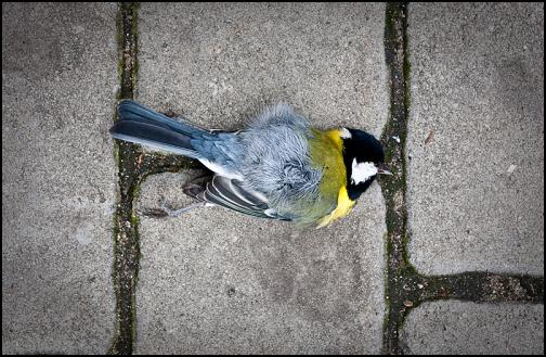 -- mały ptaszek (sikorka może coś innego?) i barwny dziób wielkiego samolotu. Właśnie ta barwa na szarości i dziwny różowy nos samoloty to przecież luźne i zabawne a zarazem zwracające uwagę zdjęcia.