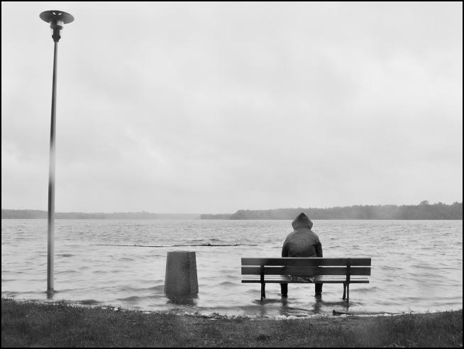 Samotność człowieka siedzącego na zalewanej ławeczce i wpatrującego się w wodę, która go zalewa jest kwintesencją losu, który dotknął powodzian. Pozorny spokój emanujący z oszczędnego i dobrze zagospodarowanego kadru zdjęcia czyni z tego widoku coś więcej niż tylko zwykłą rejestrację zastanej sytuacji.