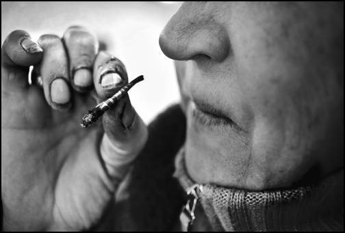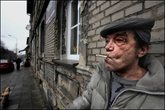 Młodym fotoreporterom aktualnie goniącym za sensacją za wszelką cenę polecam to zdjęcie ku rozwadze! Też portret anonimowego śląskiego palacza.