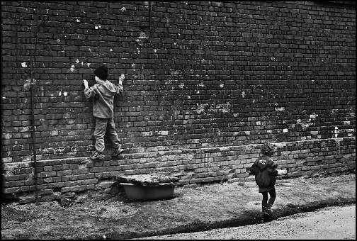W tych pojedynczych zdjęciach ta cecha jest szczególnie uwidoczniona. Nawet maleńki człowieczek jest zauważony w śród dymów wielkiego pożaru. A małe dziecko wpisuje się w wielką ścianę cegieł. I wiemy, że ten mur zdobędzie!