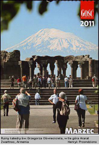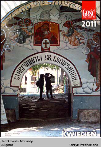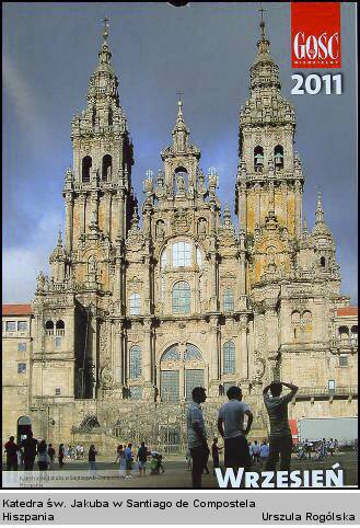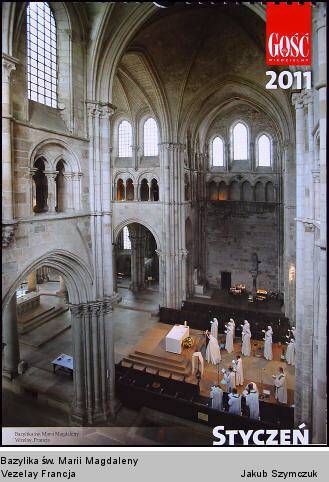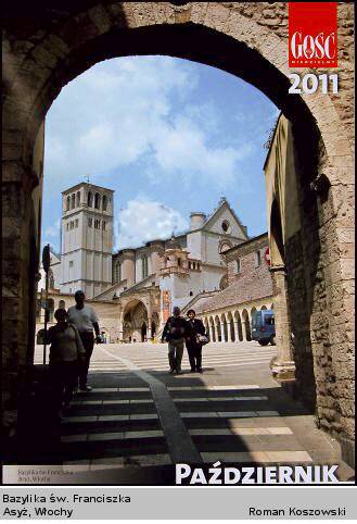 Przeglądając te nieznane mi budowle dostrzegam ich piękno, ale też czuję ich majestat trwania. Szczególnie mnie to uderzyło w zdjęciu tytułowym Bazylika Przemienienia Pańskiego Góra Tabor, Ziemia Święta autorstwa Józefa Wolnego. Majestat dostojeństwa i naszej małości widać w zdjęciu Bazyliki św. Marii Magdaleny Vezelay, Francja autorstwa Jakuba Szymczuka. Ten sam autor potrafi pokazać tylko figurę Matki Boskiej Fatimskiej na tle tłumów wiernych którzy sami w sobie są Jej kościołem. Henryk Przendziono w kilku zdjęciach tego kalendarza pokazując w tle obiekt kościelny pokazuje nam wiernych w sytuacji ściśle nawiązującej do poznawania istoty danego miejsca. Roman Koszowski potrafił widoki tych ważnych kościołów obudować klimatem kwiatów i zieleni Królewski klasztor Santa Maria de Guadalupe Hiszpania, czy klasyczną kamienną bramą Bazylika św. Franciszka Asyż Włochy. Godny zauważenia jest fakt podporządkowania wszystkich zdjęć istocie treści przekazu nie gubiąc walorów architektonicznych symboliki kościoła Symbole wiary są też widoczne lecz nie nachalne. A właśnie ten przesyt często pojawia cię w różnych innych wydawnictwach kościelnych.