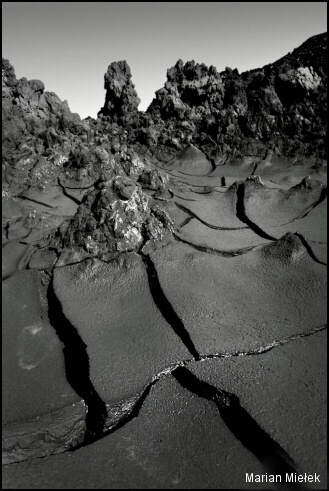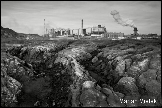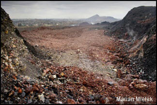 Jednak czarnych mulistych hałd jest chyba więcej i one też się pojawiły w tej prezentacji. Jednak ich charakter jest już inny. Nie są bajkowe są bardziej dramatyczne i rozlewają się wokół górniczych zakładów. Obłe kształty zainteresowały Mariana i pokazał je jako rodzaj kontrapunktu do tych barwnych. Ale istota obu rodzajów hałd jest taka sama – groźna dla człowieka. Jest jednak urokliwa dla fotografa biegnącego po grzbiecie jednej z nich. Każdy z nas fotografujących śląski krajobraz musiał przejść wiele kilometrów tak po hałdach jak i obok nich. Wszystkich nas fascynowały i wciągały w swoje przestrzenie.