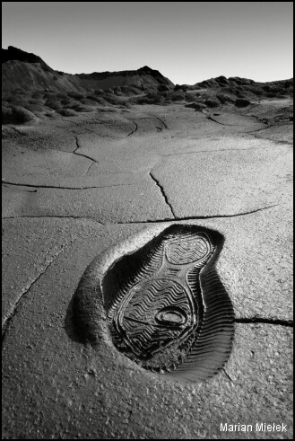 Marian Miełek kończy swój zestaw znamiennym zdjęciem – jest to odcisk górniczego gumiaka właśnie w mazi mułu węglowego.I właśnie ten odcisk jest formą pieczęci człowieka, który w takich gumiakach przemierzył olbrzymią liczbę kilometrów tak pod ziemią jak i na jej powierzchni! Dzisiaj jest święto naszej śląskiej Barbary – jest mi miło pisać ten górniczy komentarz. Mnie, który też jestem górnikiem. Pracowałem w górnictwie 10 lat. Trochę na dole w Przedsiębiorstwie Montażu Urządzeń Eklektycznych PW. Komentarz ukaże on się kilka dni po tym święcie, ale to wcale nie ujmuje mu tak wartości jak i moich przemyśleń dzięki dobrym zdjęciom, jakie zaserwował nam Marian.