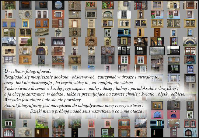 Miał na myśli Górny Śląsk. Wiesia pokazując nam swoje okna ze świata większego, bo chyba z Polski i Europy tak mi się zdaje. Ostatnia strona tej prezentacji zawiera tylko fragment jej wielkiej kolekcji – kolekcji okien magicznych!