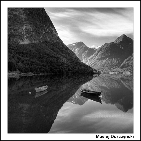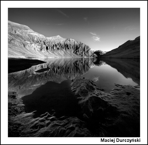 Egzotyczne pejzaże Macieja Durczyńskiego nie są śląskie, ale są bardzo ciekawymi widokami nie tylko masywów górskich, ale doskonałym układem graficznej kompozycji. Rzadko się zdarza taki ciekawy układ perspektyw i odbić w wodzie tak współgrających ze sobą. Mając do dyspozycji tych kilka zdjęć mogę być pewny tego, że w Pozytywie jest jeszcze kilku członków, których fotografię można tak skomentować jak i prezentować na pokazach śląskiej fotografii.
