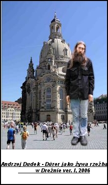 Andrzej Dudek-Dürer – fotograf, performer, artysta sztuki mediów, kompozytor, i muzyk. Od 1969 roku realizuje life performance w Miejscach, w Których się pojawia... Do roku 1978 Andrzej Dudek-Dürer żyje w izolacji. W 1979 roku rozpoczyna realizację projektów SZTUKI PODRÓŻY na terenie Polski, następnie Europy Zachodniej, Meksyku, USA, Kanady, Australii, Nowej Zelandii, Singapuru, Korei Południowej, Japonii. Prezentował swoją twórczość i prowadził wykłady m.in. Art. Institute w Chicago; Academy of Art. Collage w San Francisco; National deMusica w Mexico City; The City Art Institute w Sydney: ASP w Gdańsku; Centrum Sztuki Współczesnej w Warszawie. Stypendysta Ministerstwa Kultury w 2002. Stypendysta Ministerstwa Kultury i Dziedzictwa Narodowego 2011.