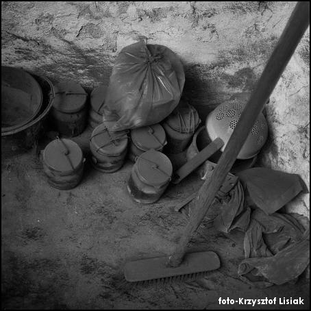 W piwnicach z węglem nie wisiały krzyże i zdjęcia ślubne. Te prezentowane na zdjęciach zostały przyniesione z sypialni, bo tam nad łożem małżeńskim było ich miejsce – zostały przyniesione jako ważne symbole dla ludu śląskiego. Naturalnie piękne śląskie szaty też nie bywały w piwnicach. Tutaj na tych zdjęciach dodają splendoru domownikom, którzy w roboczych ubraniach schodzili do tych piwnic i spełniali swoje codzienne obowiązki z śląską dokładnością i porządkiem. Ten porządek był oczywistością i wiele razy dostałem za swoje za bałagan, jaki zostawiałem po swoim tam pobycie.