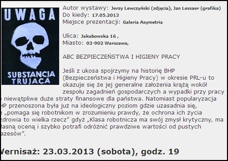 Ten komentarz zawiera też zdjęcia które nie są eksponowane na wystawie ale uzupełniają w pewnym stopniu ciągoty Jrzego do zastosowań w swoich zdjęciach czyichś tekstów (niekoniecznie BHP) i chyba tym samym ubogacają twórczość J. Lewczyńskiego!