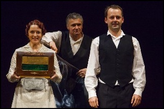 Dla nas znających śląskie realia właśnie te gesty, barwy czy symbolika czerwonego krawatu w zielonkawej bluzie są oczywistością. A gdy dodamy + właściwy moment naciśnięcia spustu aparatu fotograficznego to widzimy warsztat i zaangażowanie dobrego fotografa. A z tego zestawu zdjęć widać, że jest to dobra fotografia. Zrobiona z dużym ładunkiem emocji. Ta skromna ilościowo prezentacja zawiera jednak w sobie też emocje wielu ludzi; autora – reżysera i wreszcie bardzo dobrych aktorów Teatru Śląskiego.