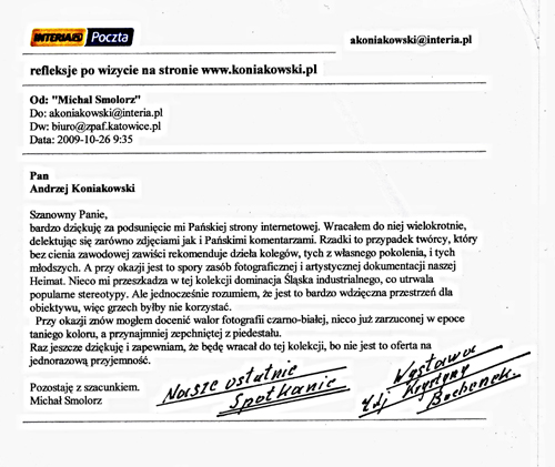 Koleżeństwa Okręgu Śl, ZPAF. Teraz komentuję też fotografię Koleżeństwa warszawskiego. Jest to kopia Komentarzy Fotograficznych znajdujących się na stronie internetowej; www.koniakowski.pl - Bo jak nie będzie prądu to nie będzie Internetu a zapis papierowy w Bibliotece przetrwa o wiele dłużej i będzie dostępny dla każdego ciekawego historii śląskiej fotografii i sylwetek jej twórców.