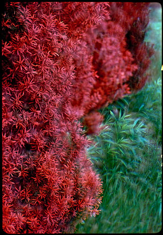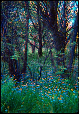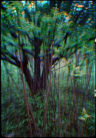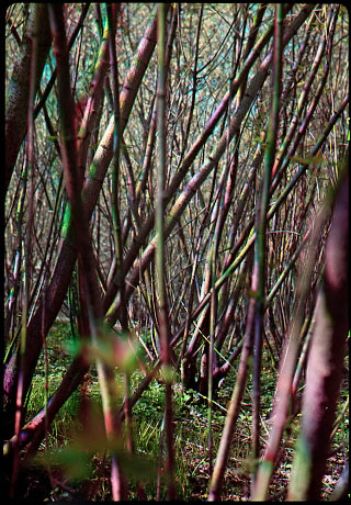Gałęzie i konary drzew układają się tak ciekawie i różnorodnie, że można je oglądać jak jakieś graficzne zjawy wychylające się z zielono-barwnej przestrzeni.