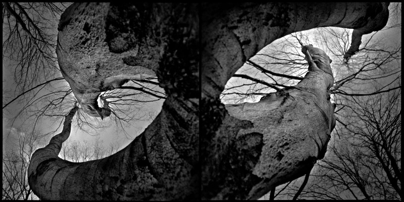 Powstała Grafika fotograficzna z ciekawymi i bardzo silnymi obrazami monumentalnych i grubych konarów. I chyba właśnie chyba ta zdecydowana kompozycja pierwszego i drugiego planu daje nam i wtedy radosne odkrycia obrazów podobnych a jednak różnorodnych które poprawiają nam humor i samopoczucie.